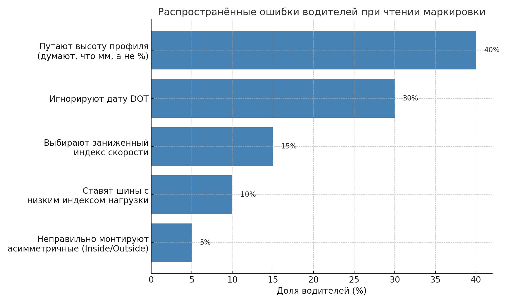 - Игнорирование даты DOT. Резина стареет даже без эксплуатации.